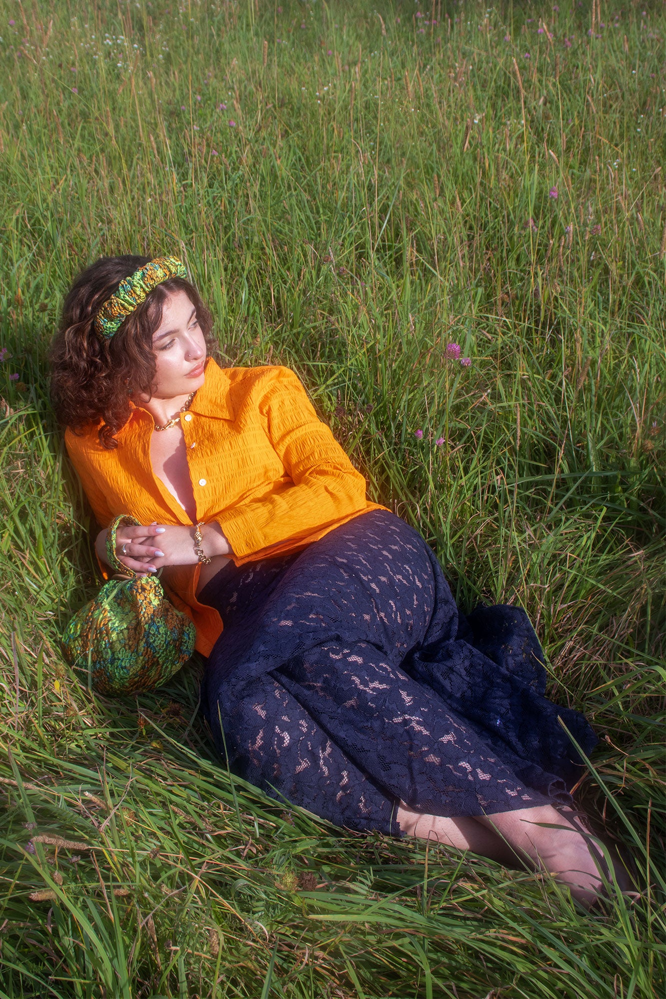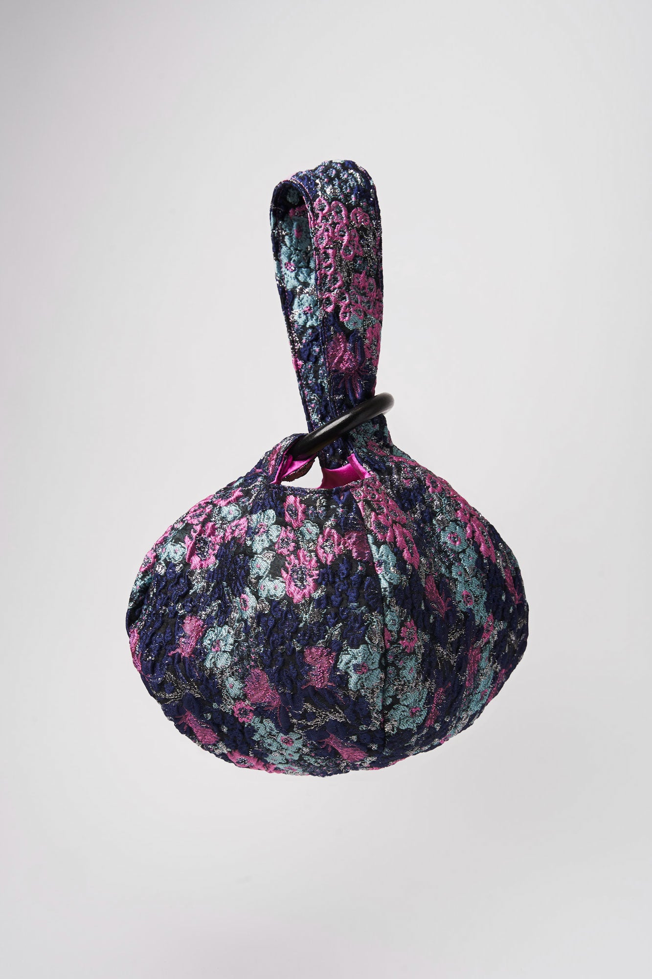 A limited edition collaboration born from a dedication to sustainable production and a penchant for drama. Introducing Fly By Night's signature scrunchie crowns, featuring a romantic floral metallic brocade fabric. Designed to pair with our matching Cece Handbag for a complete look.