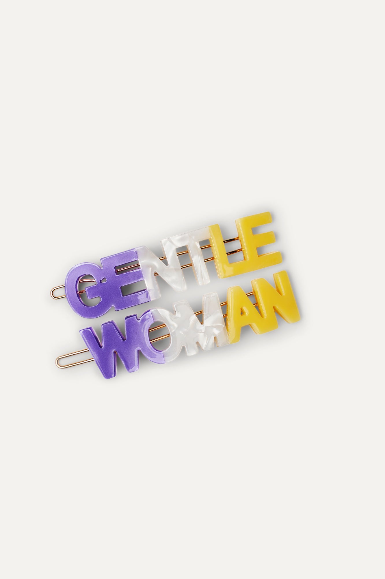 A statement hair clip set with purple and yellow, the colors of the women's suffrage movement.