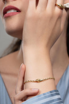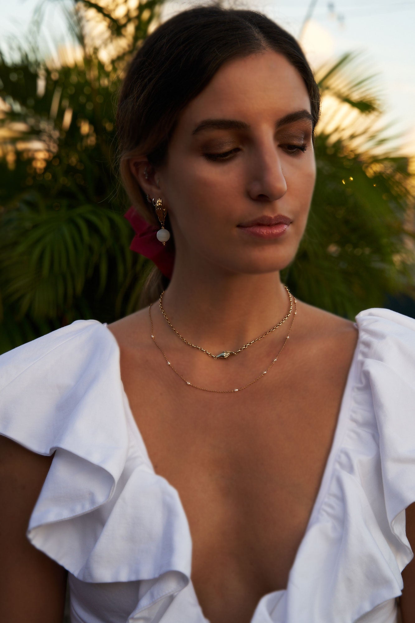 A daintier version of our classic design in 14K gold, featuring a magnetic handshake clasp. This piece is designed for durability.