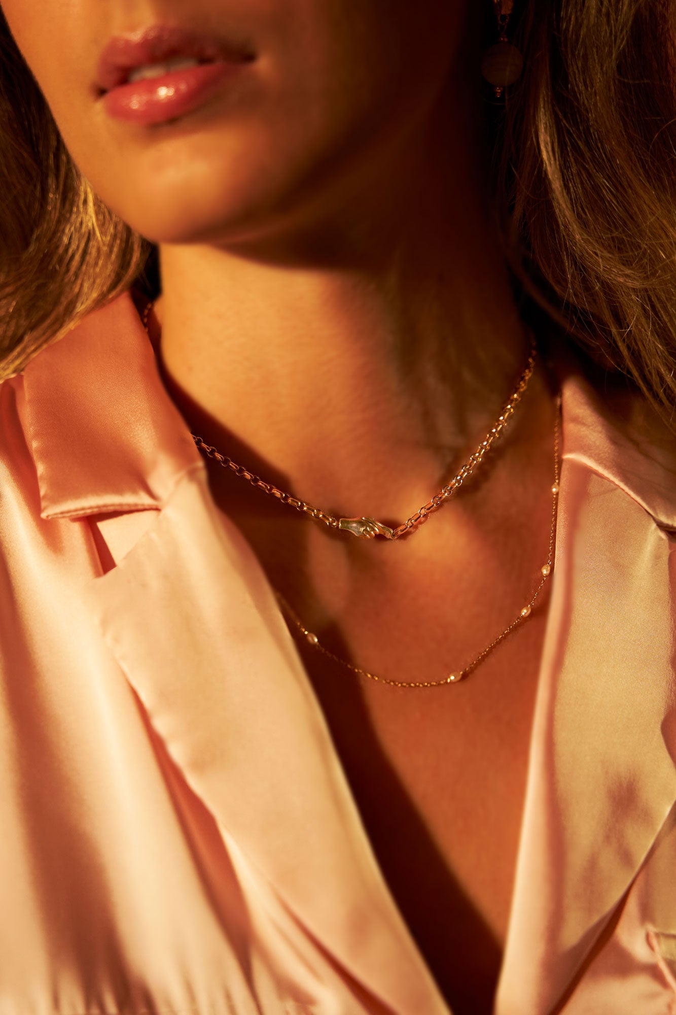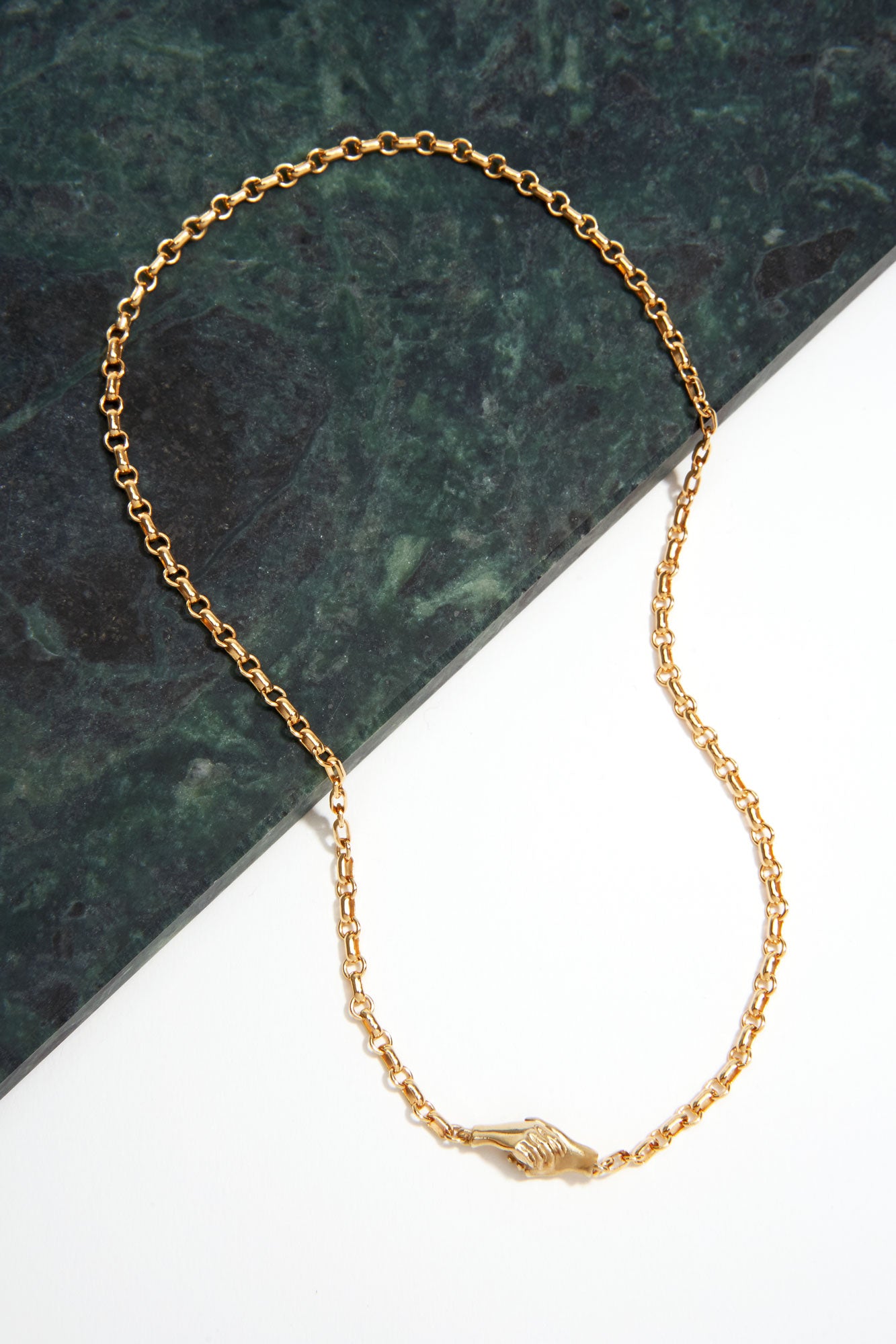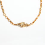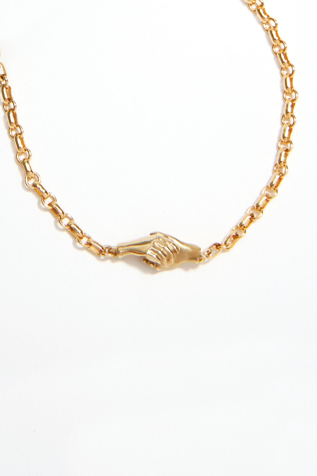 A symbol of the strength women have when we do things together. Elegant clasped hands seal the deal. This handshake necklace is a unique piece sure to become a wardrobe staple.