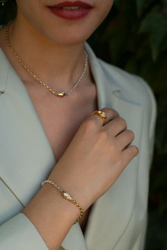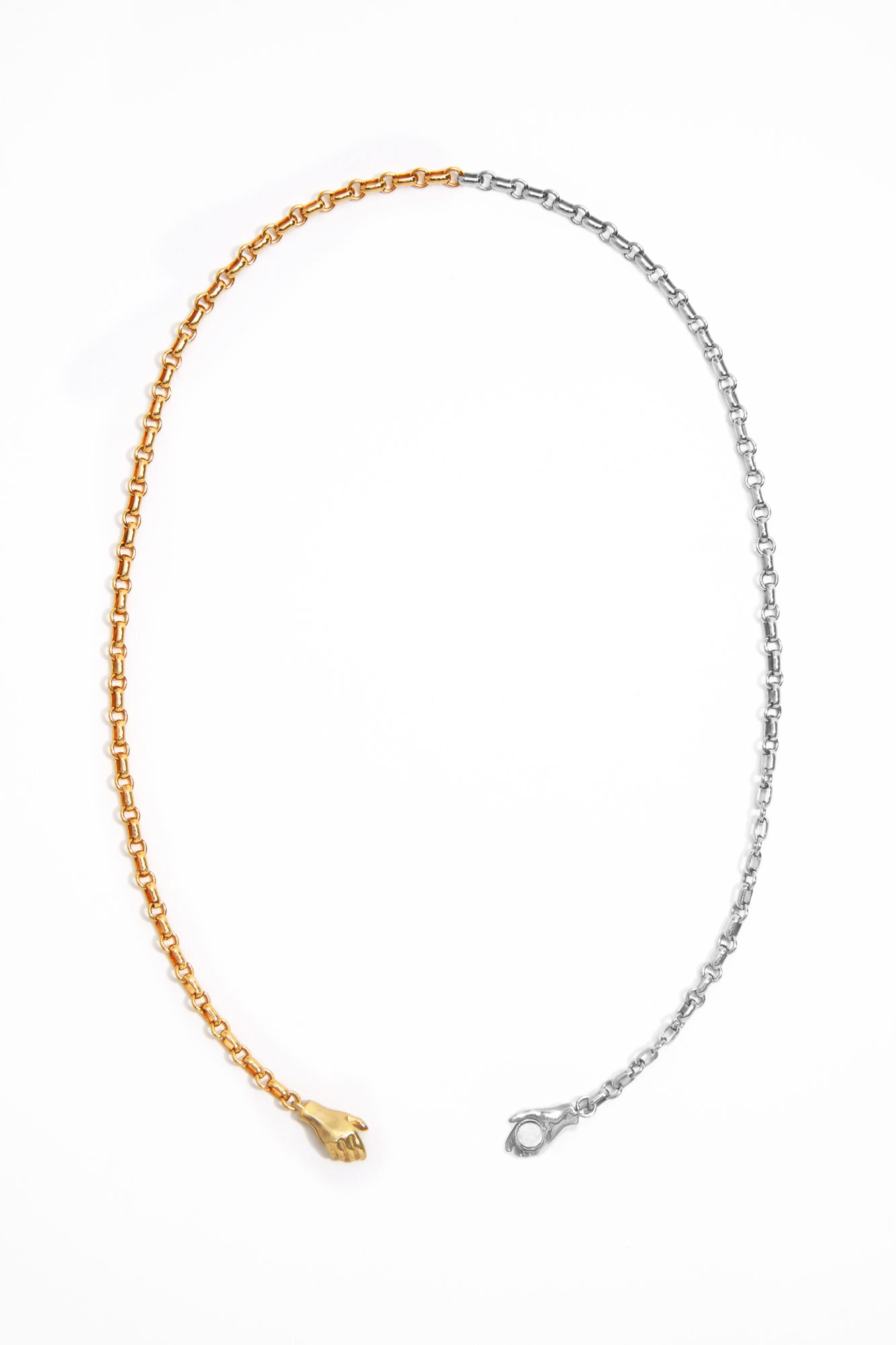 A daintier version of our classic two-tone design in 14k yellow gold & .925 sterling silver, featuring a magnetic handshake clasp. This piece is designed for durability.