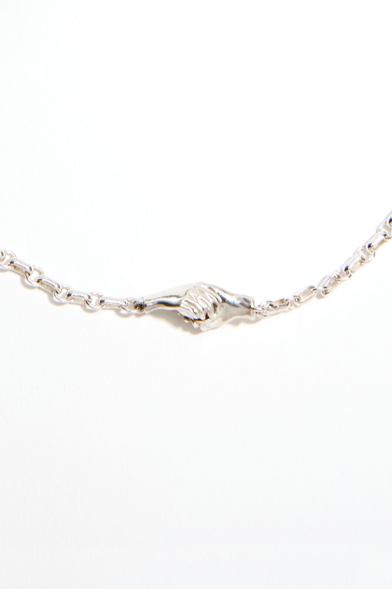 A symbol of the strength women have when we do things together. Elegant clasped hands seal the deal. This handshake necklace is a unique piece sure to become a wardrobe staple.