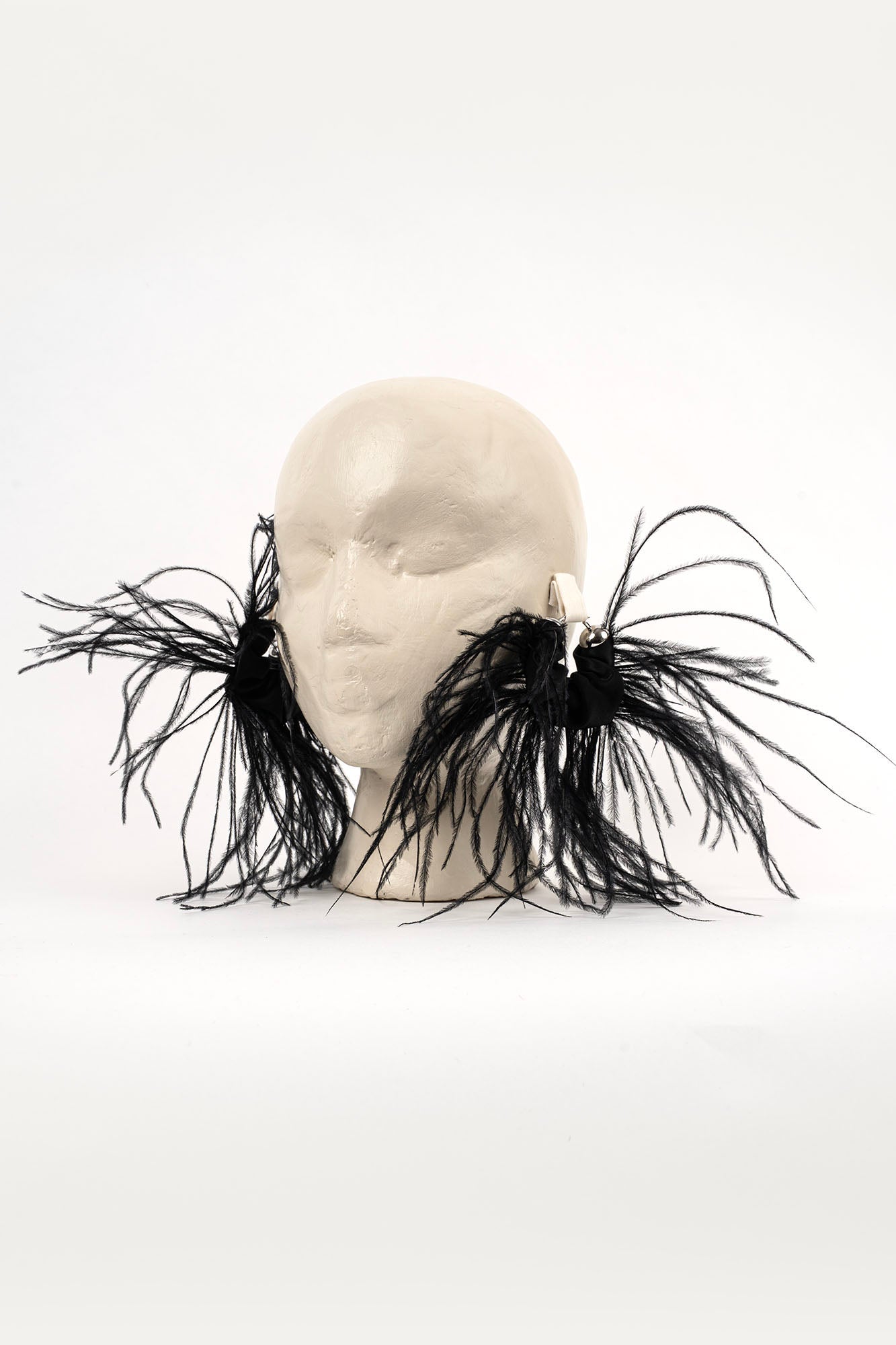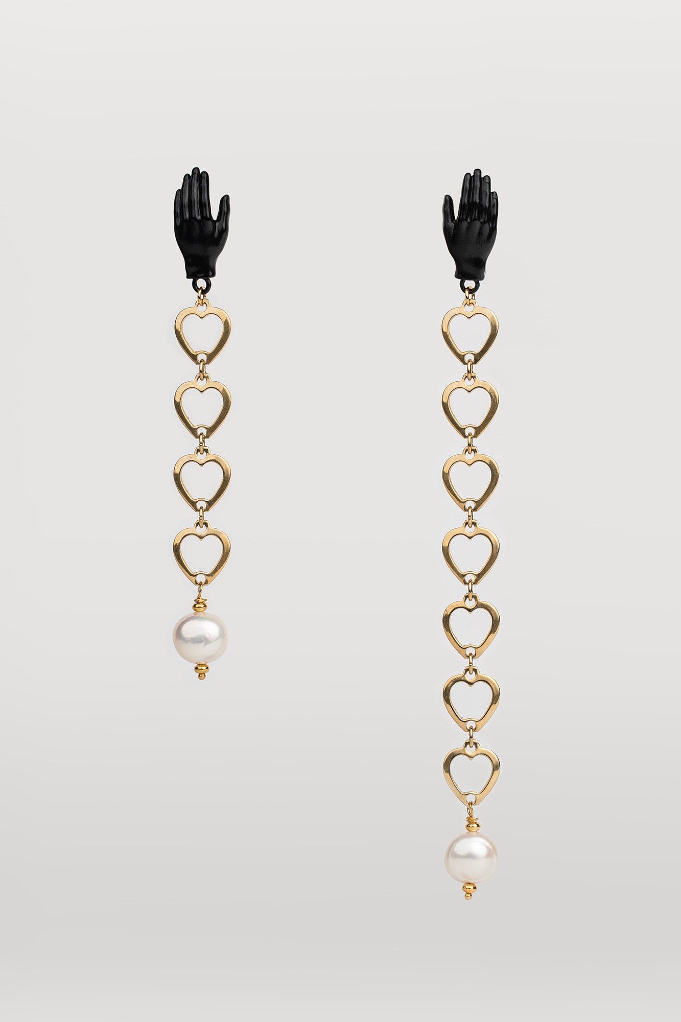 Black Hand & Hearts Pearl Asymmetrical Earrings