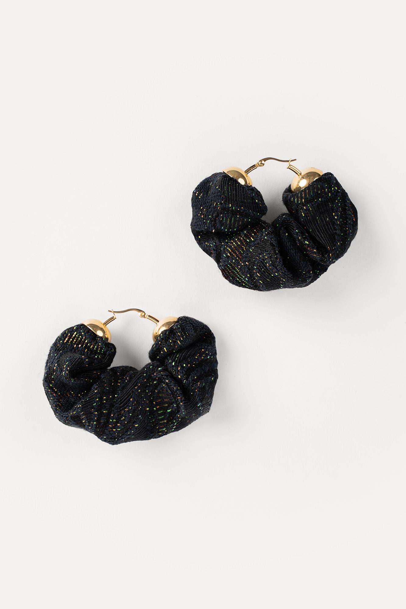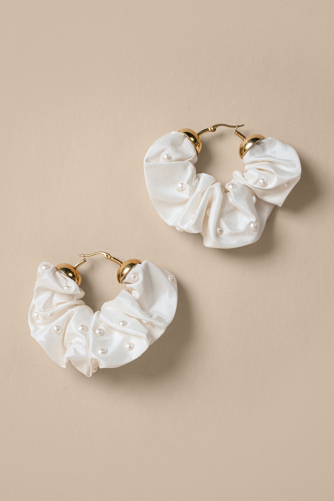 Pearl Studded Ivory Silk Taffeta Scrunchie Earrings