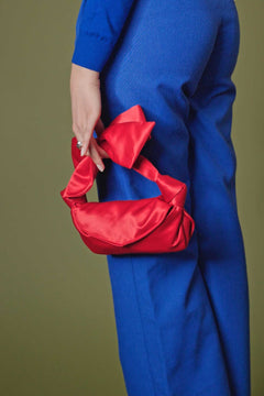 A charming set of lightweight hoops that make a statement. Sustainably handcrafted with our finest remnant fabric from production. Featuring red velvet.