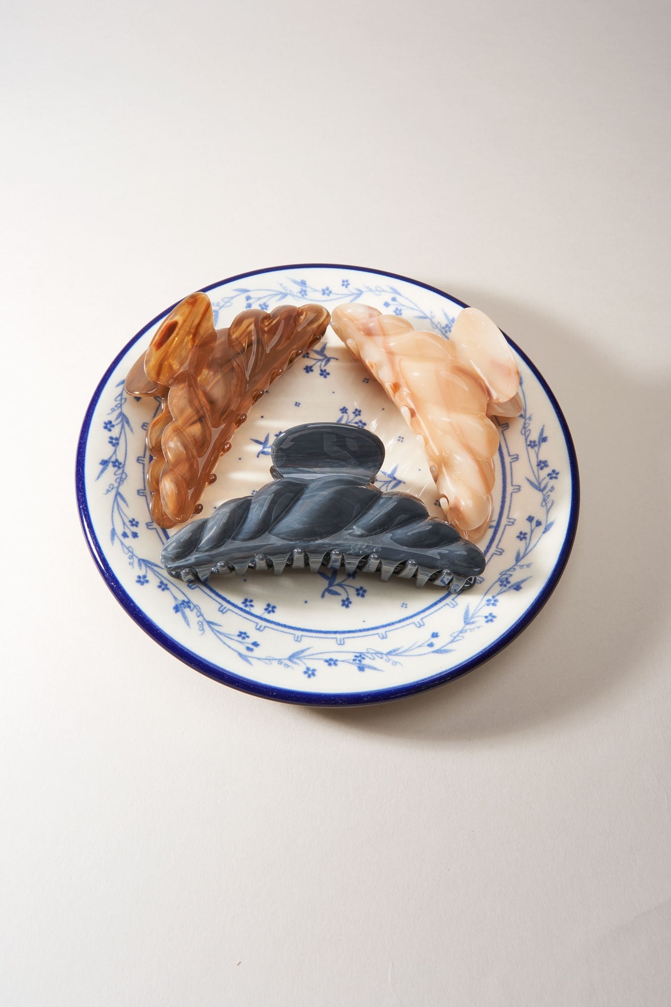 A twist on the French classic. With sculptural and marbled details, this piece lends a timeless, yet contemporary upgrade to any look.