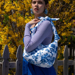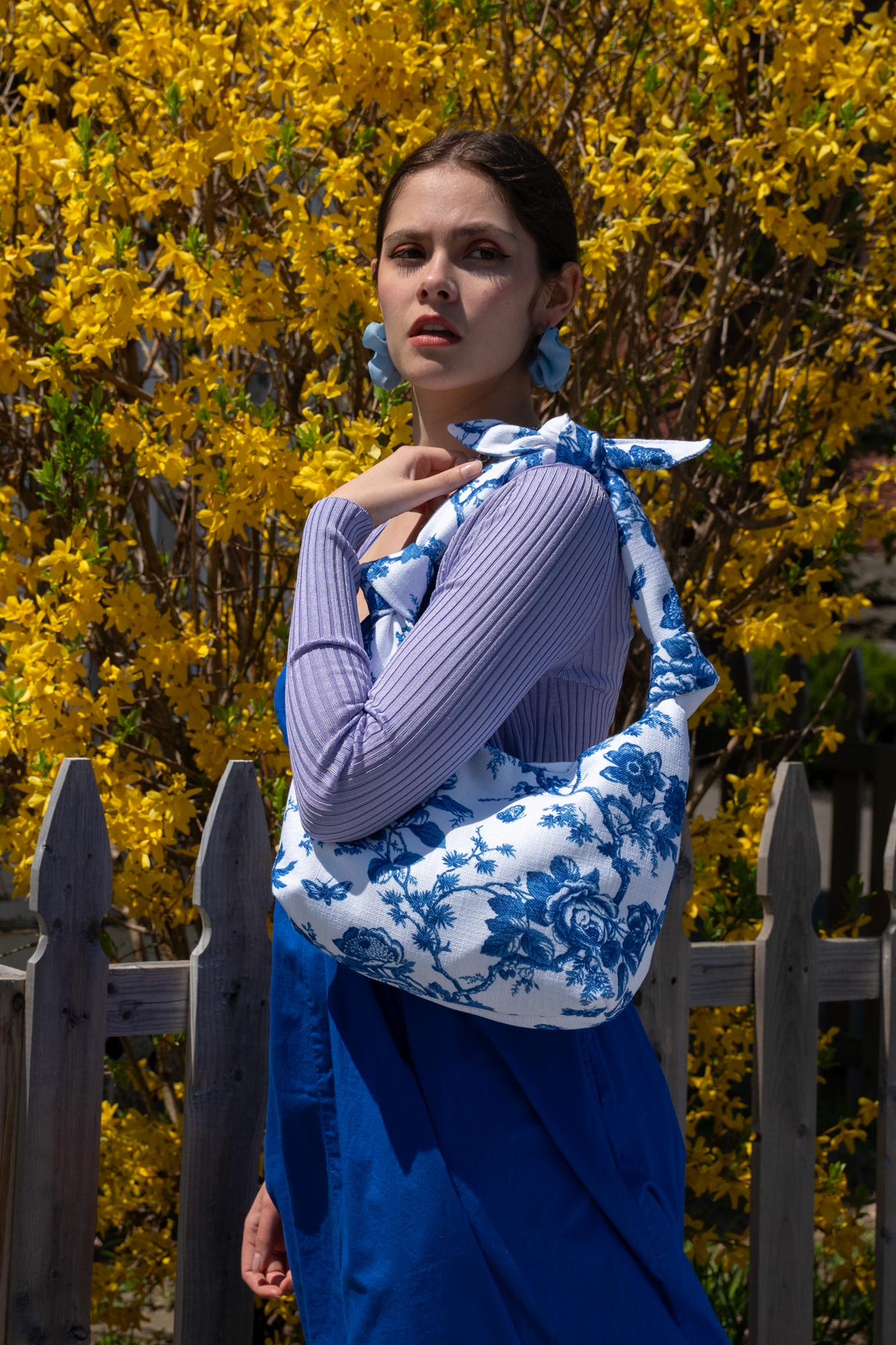 A Dutch ceramics inspired linen tote inspired by the Furoshiki Japanese technique of wrapping with fabric. Designed with enough room to carry treasures from the day. Fully lined with a concealed interior pocket for your cell phone.
