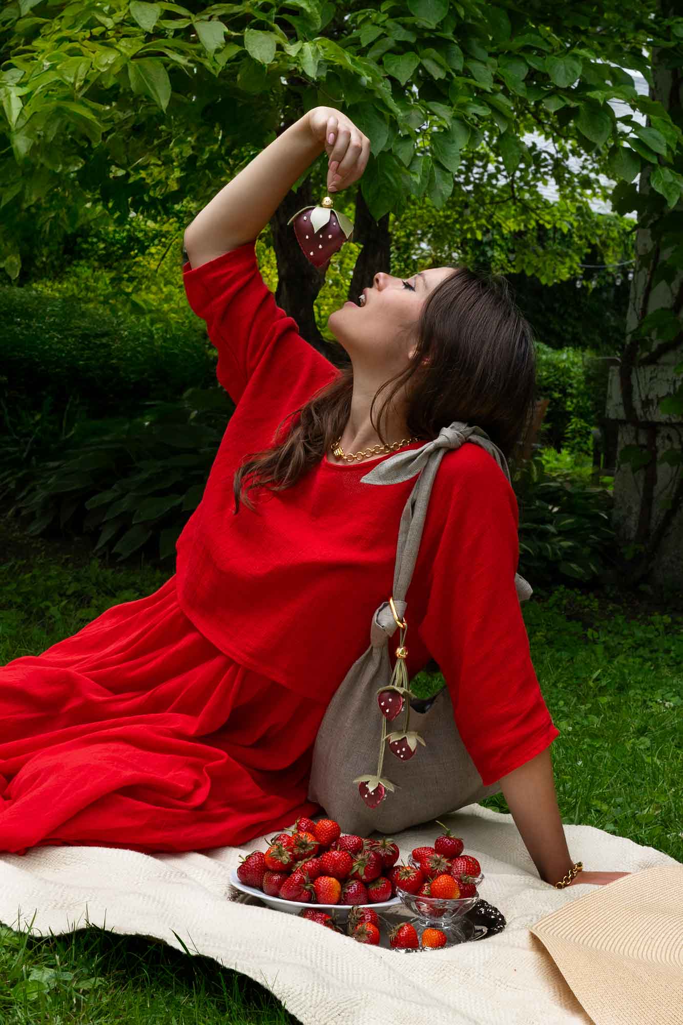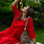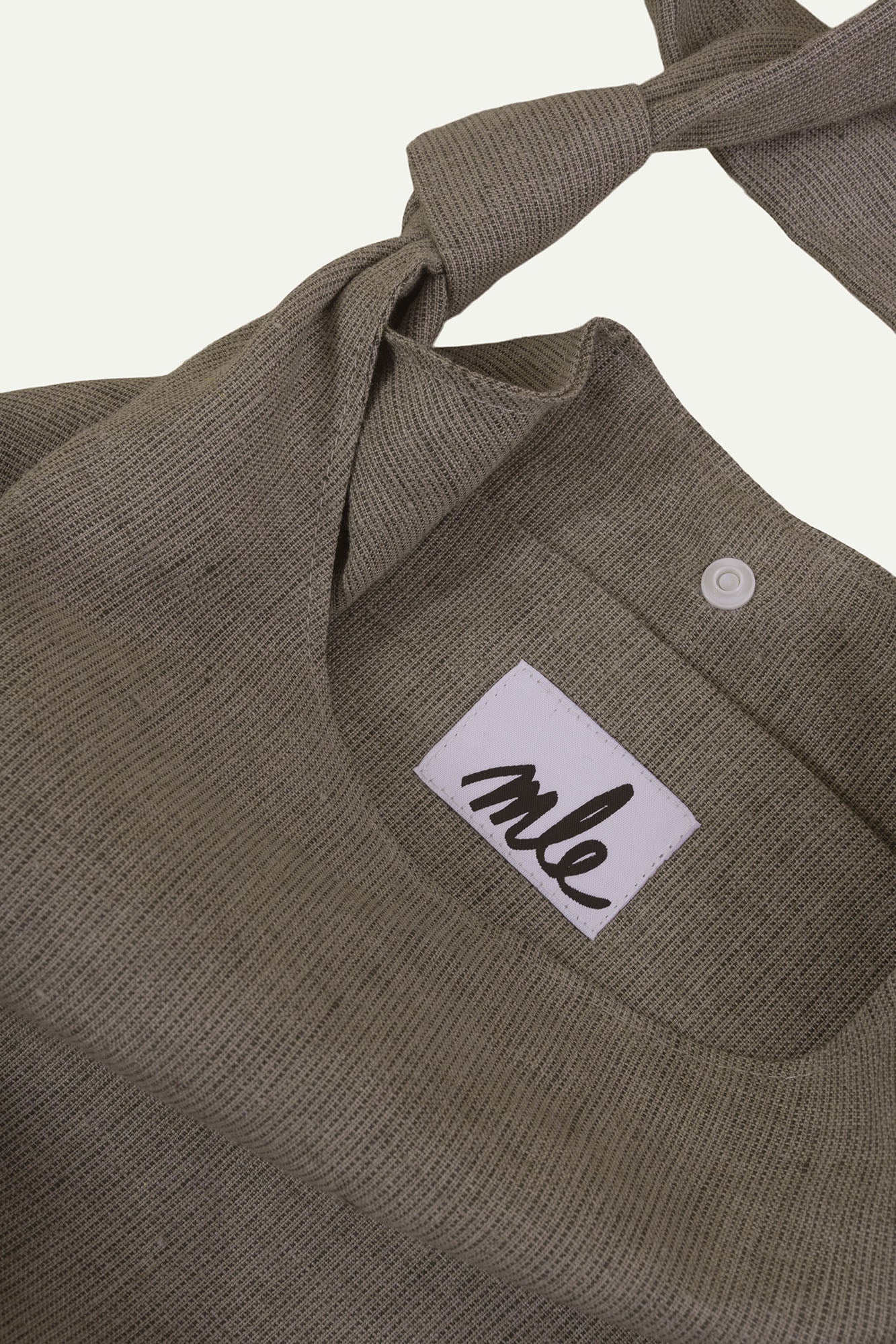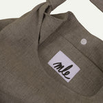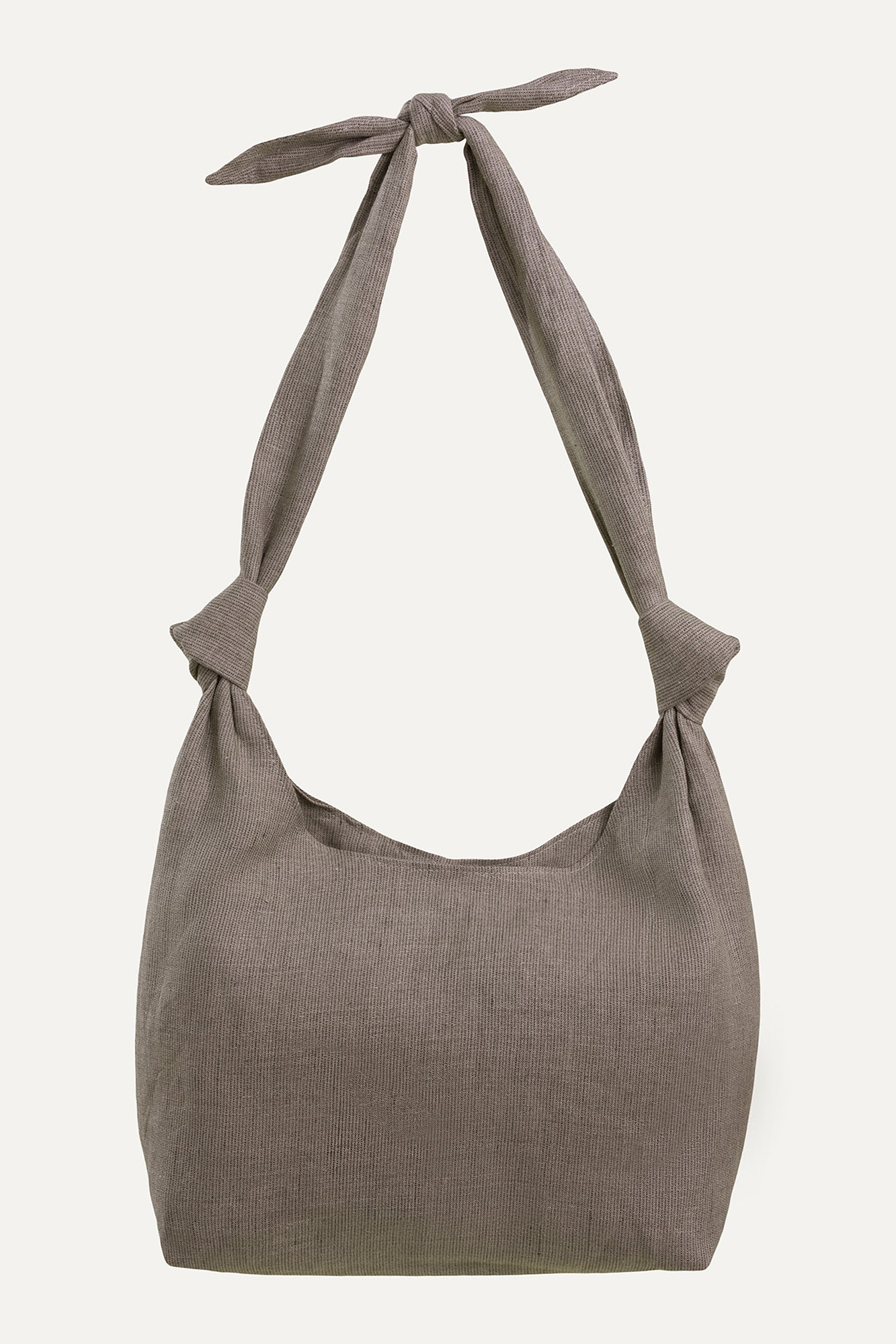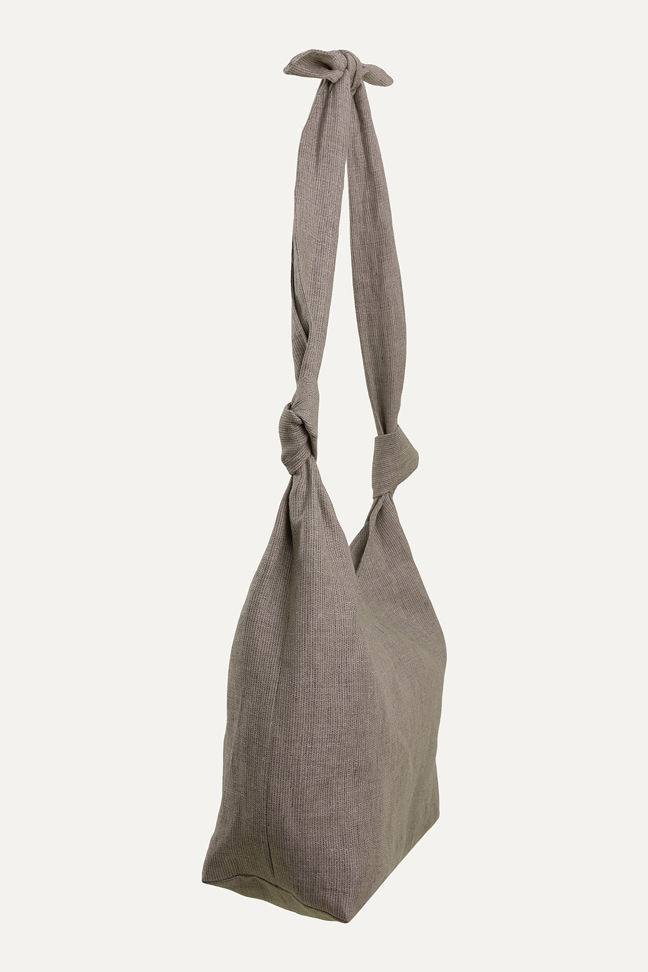 A neutral tan linen tote inspired by the Furoshiki Japanese technique of wrapping with fabric. Designed with enough room to carry treasures from the day. Fully lined with a concealed interior pocket for your cell phone.