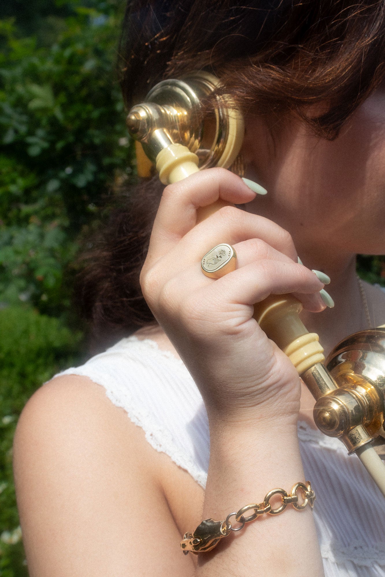 Featuring an engraved rose and hearts- symbols of Aphrodite, the ancient Greek goddess associated with love and beauty.