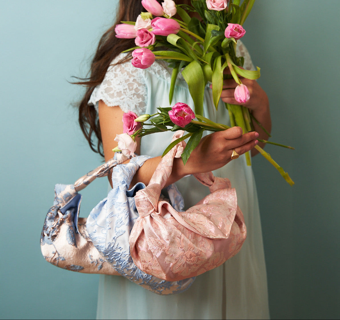 Our signature Nodo Clutch in custom colorways, all sustainably made with remnant fabrics sourced from the NY Garment District.