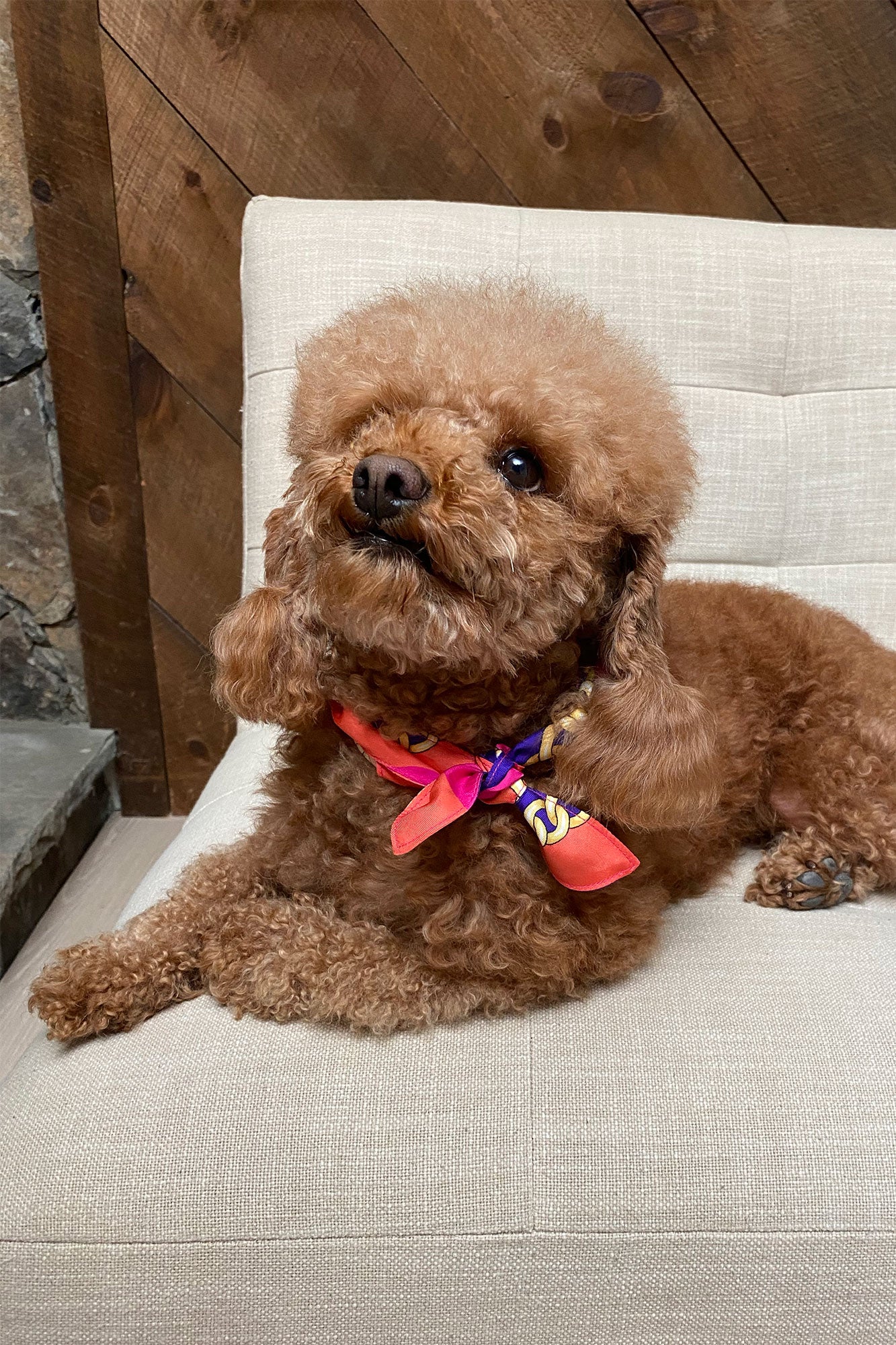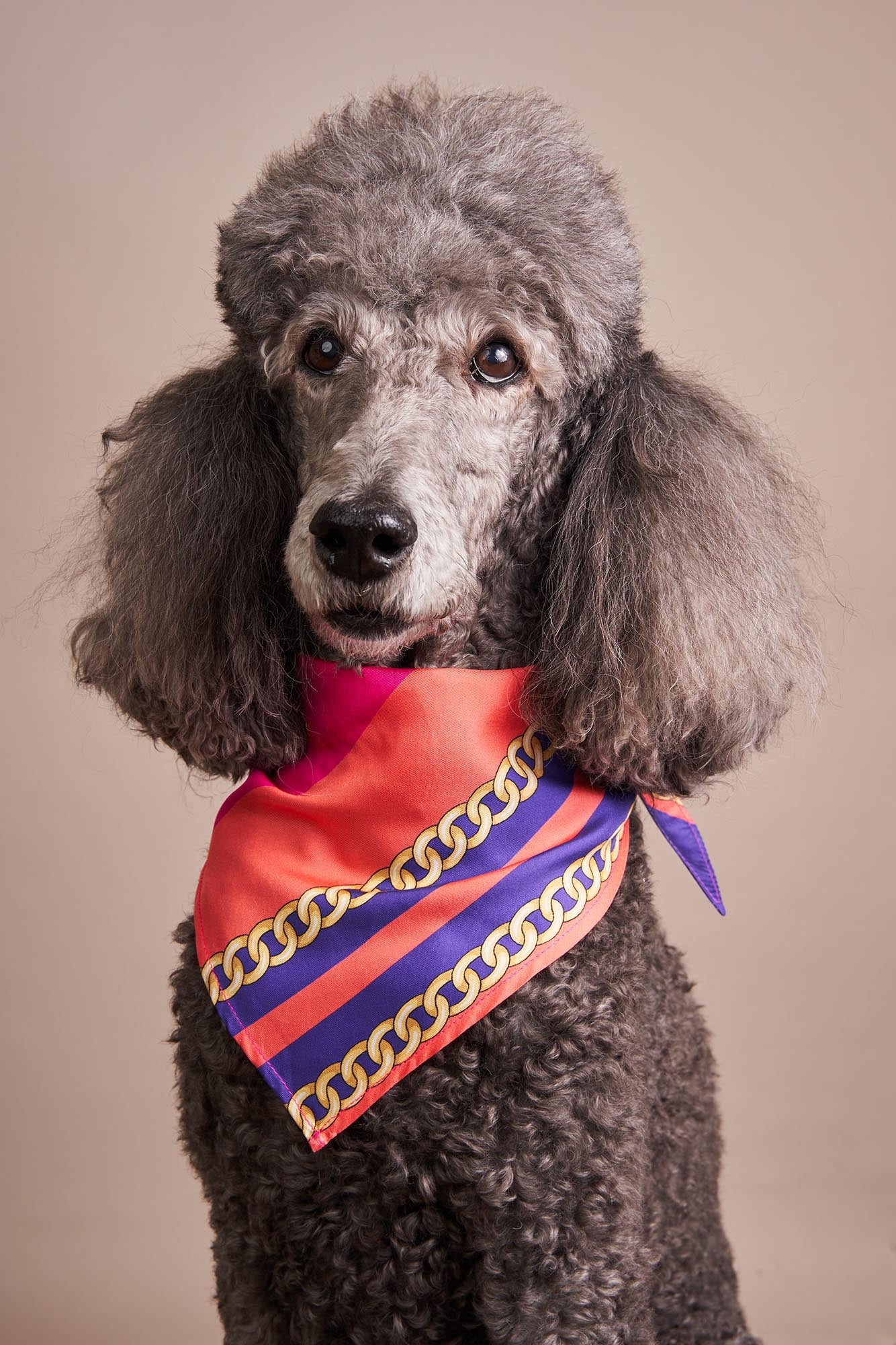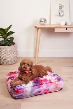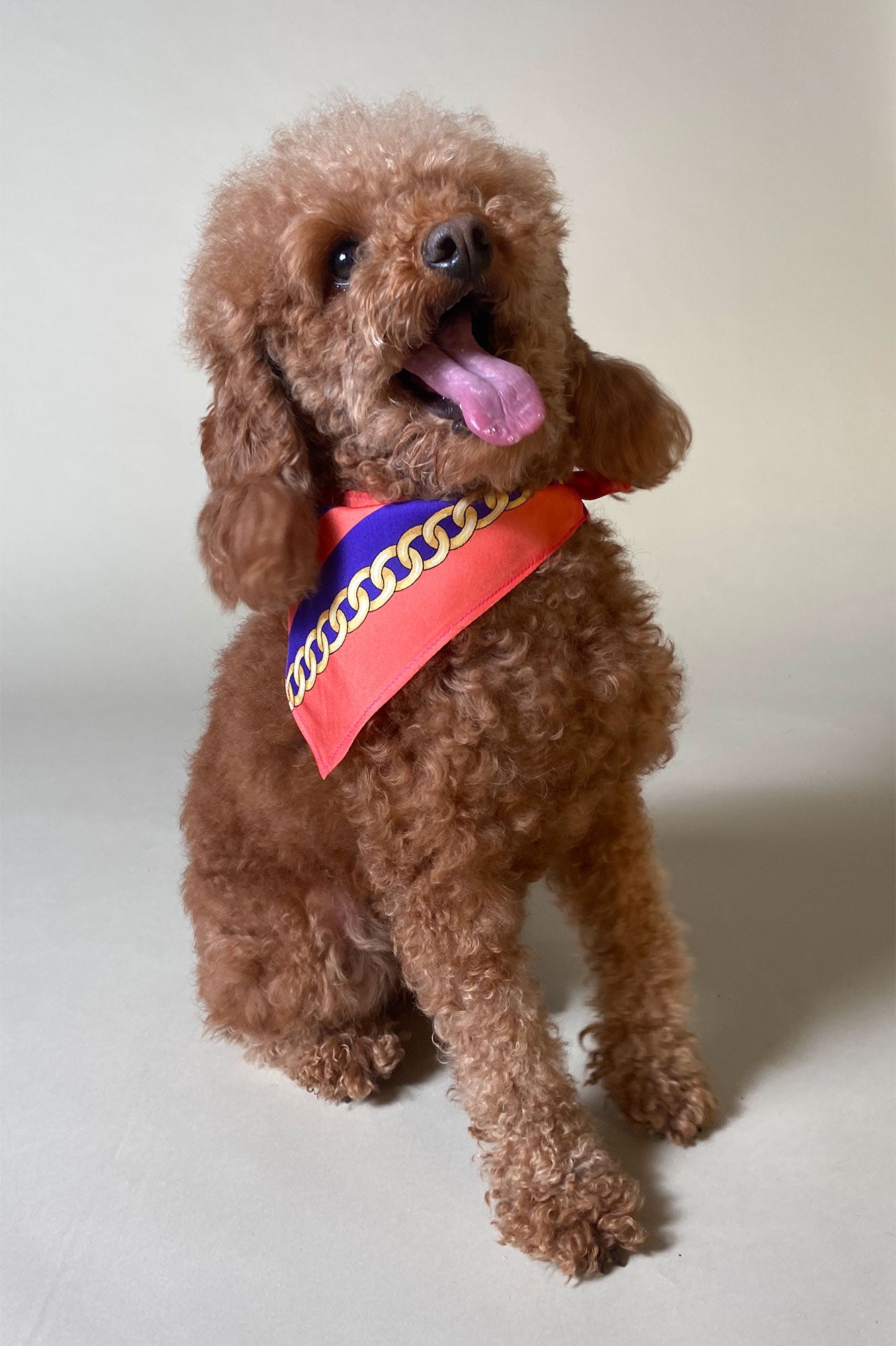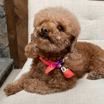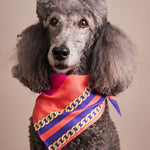 A vibrant & chic print in pink, purple, and coral for your furry friend.
