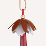 Double Flower Leather Bag Charm in White & Red