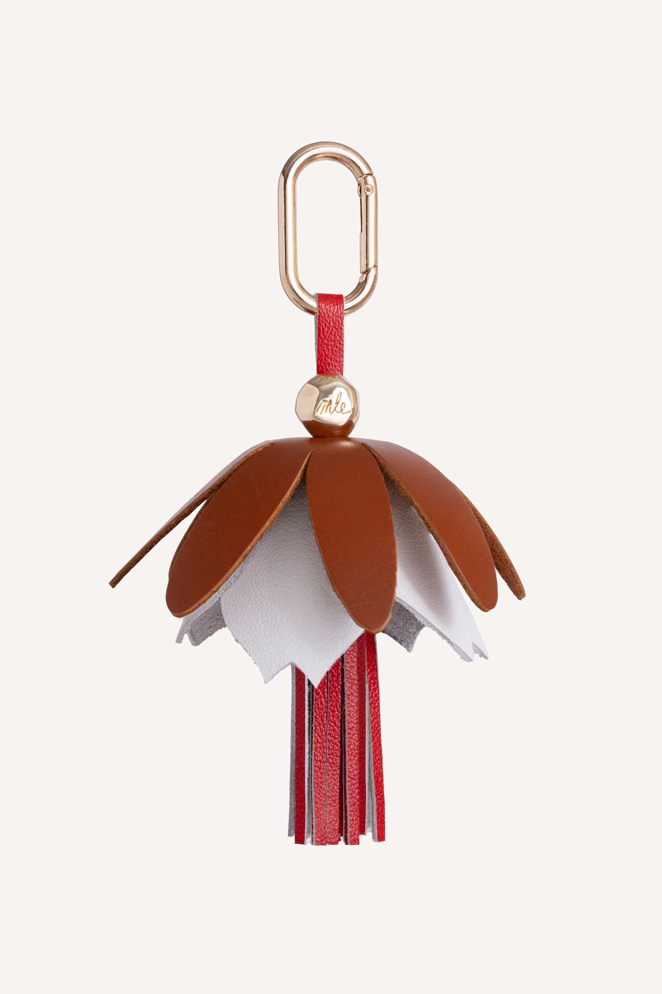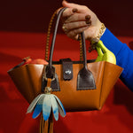 Add a pop of floral fun to your handbag. Made with genuine leather in our Saugerties, New York studio, this bag charm is a playful and whimsical addition to any look. Featuring a handstitched flower & contrast tassel.
