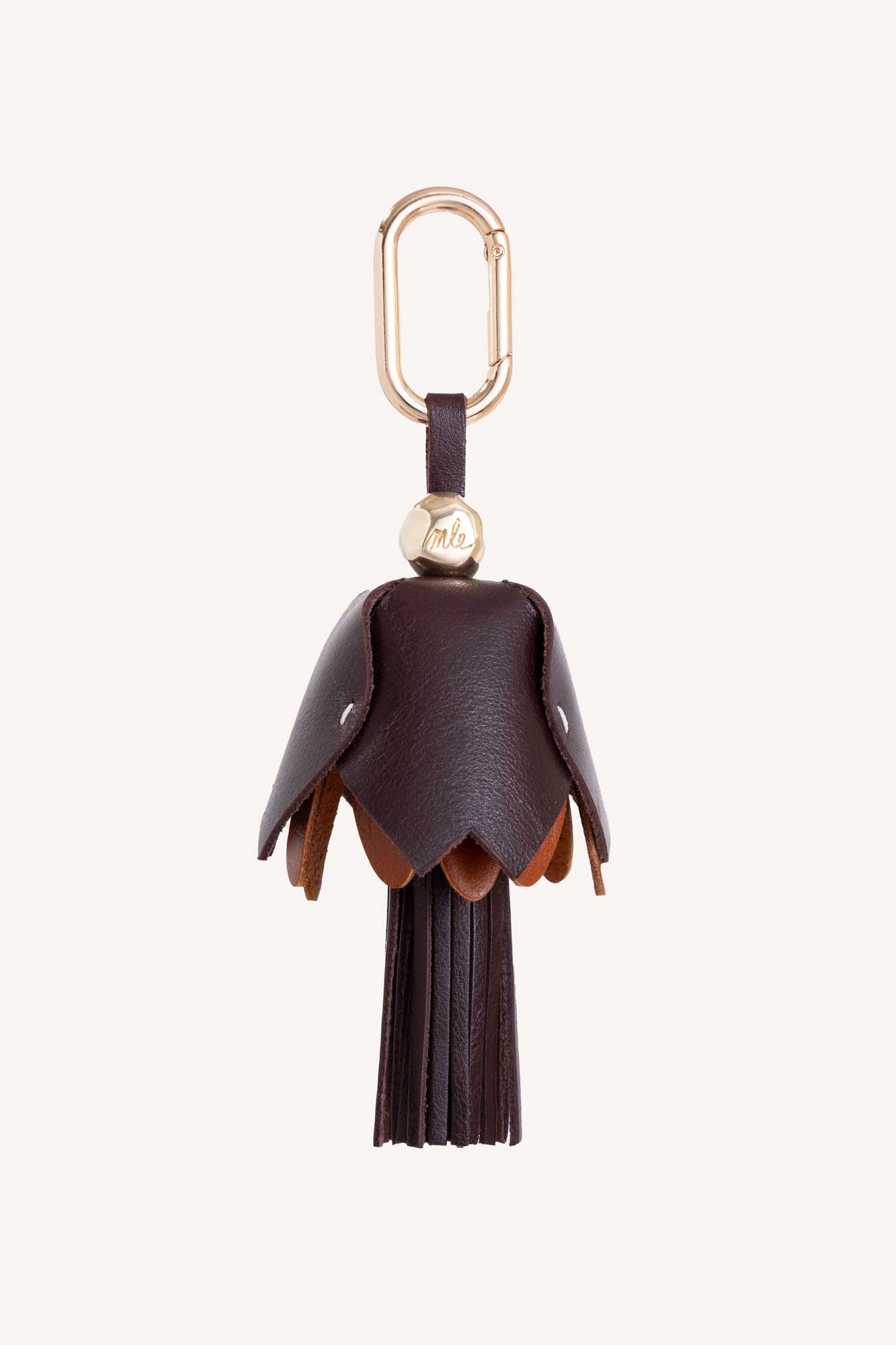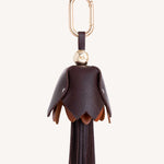 Double Tulip Leather Bag Charm in Brown & Cognac