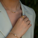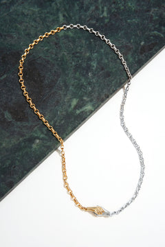 A daintier version of our classic design, featuring a magnetic handshake clasp. This two-tone piece is designed for durability, made of .925 sterling silver & 14K gold.