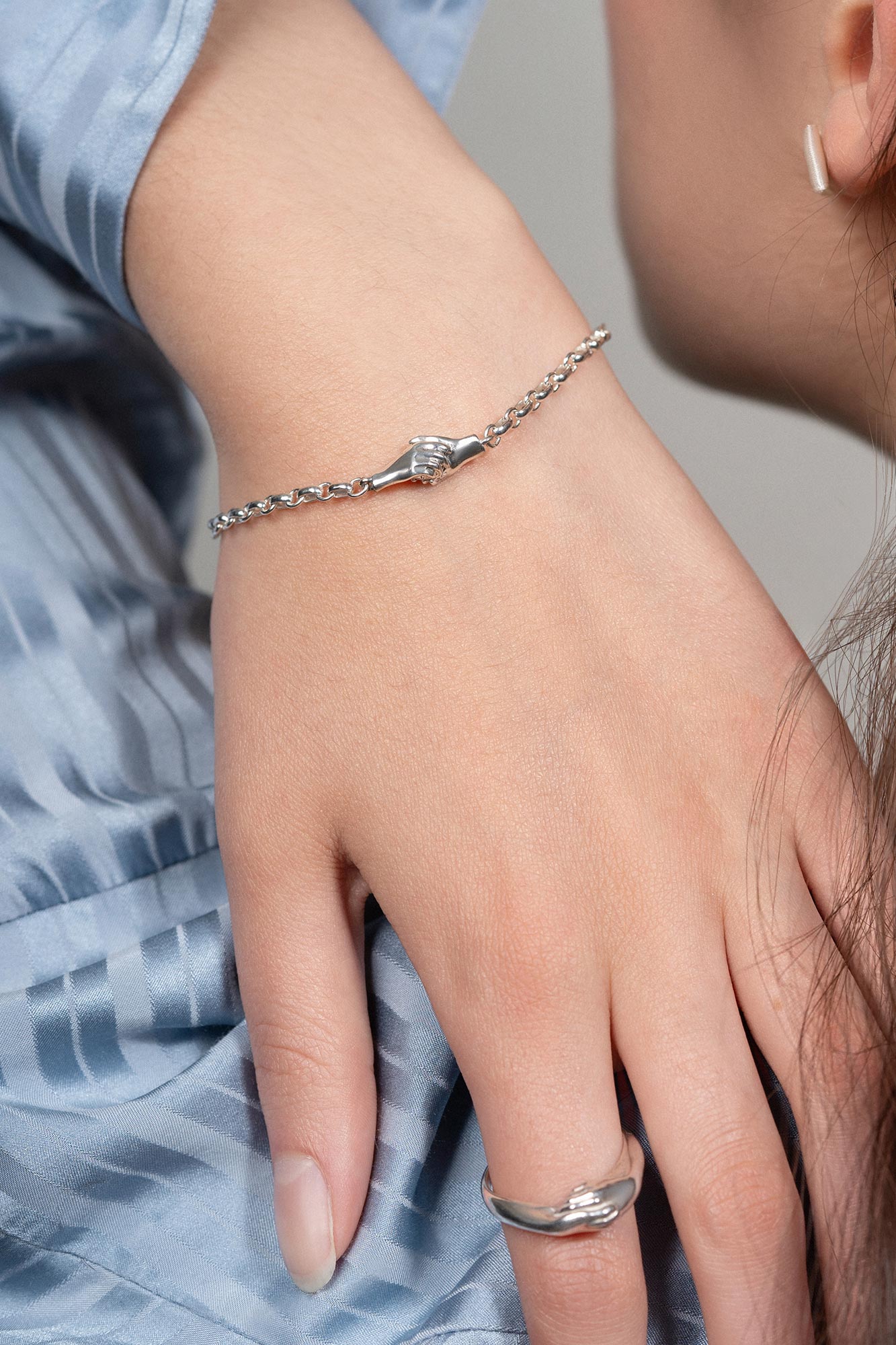 A daintier version of our classic design, featuring a magnetic handshake clasp. This piece is designed for durability in .925 sterling silver.