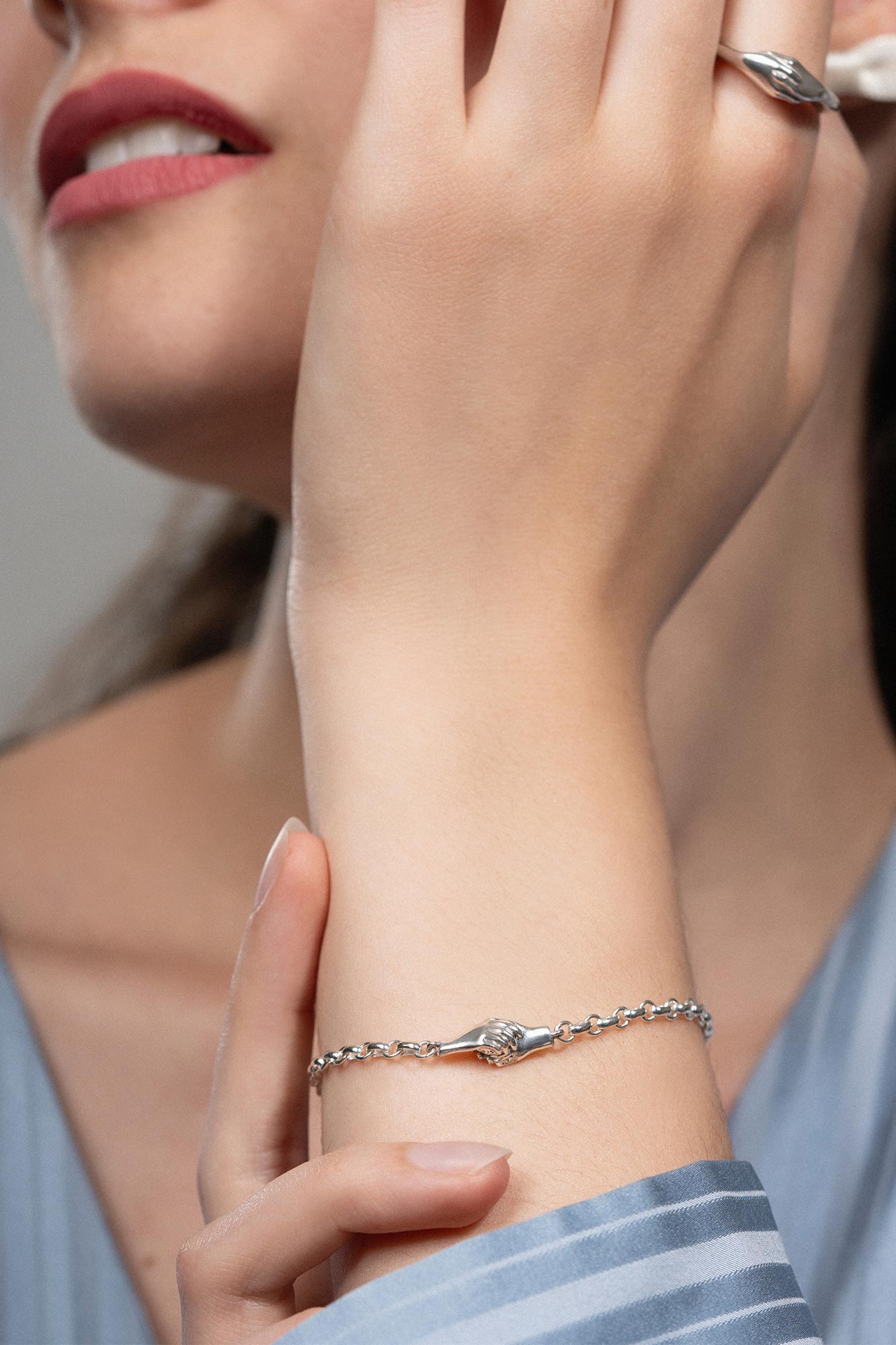 A symbol of the strength women have when we do things together. Elegant clasped hands seal the deal. This handshake necklace is a unique piece sure to become a wardrobe staple.