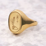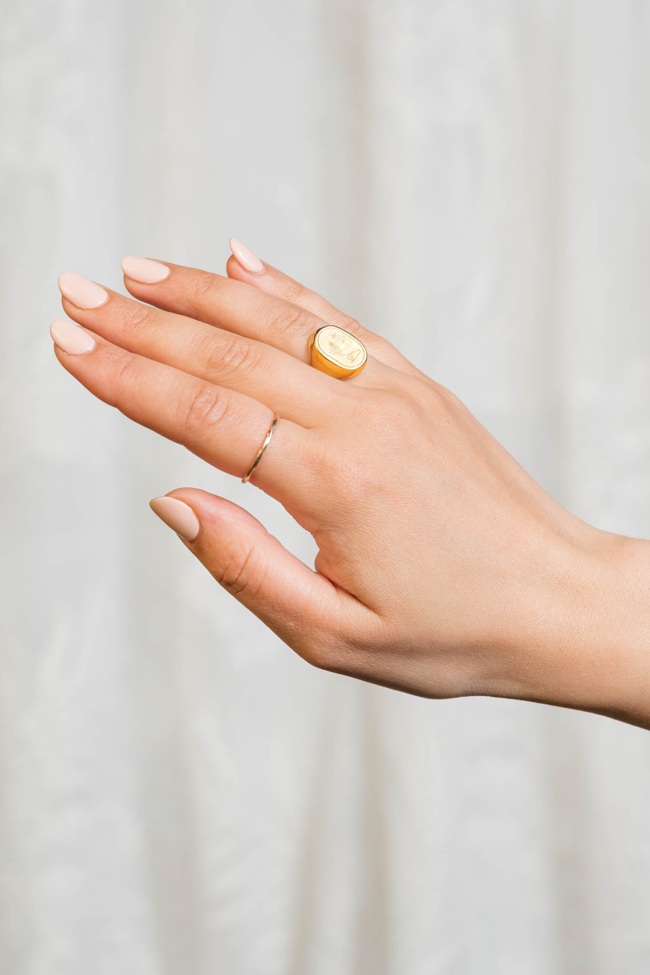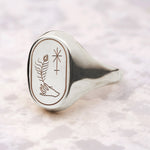 Featuring an engraved peacock feather- the symbol of Juno, the ancient Roman goddess of maternity & marriage.