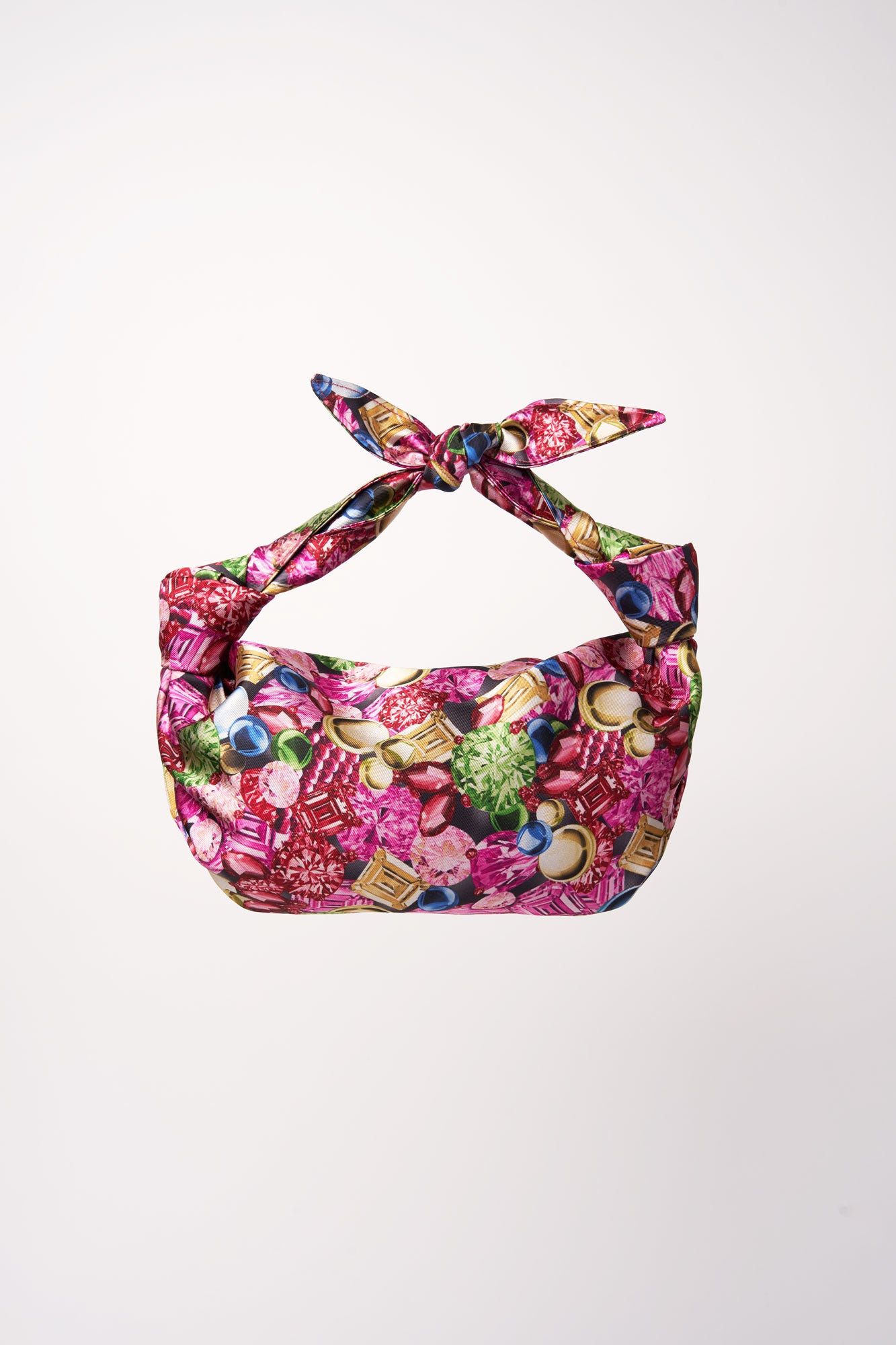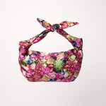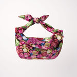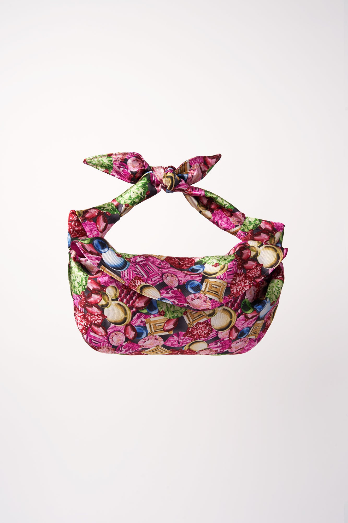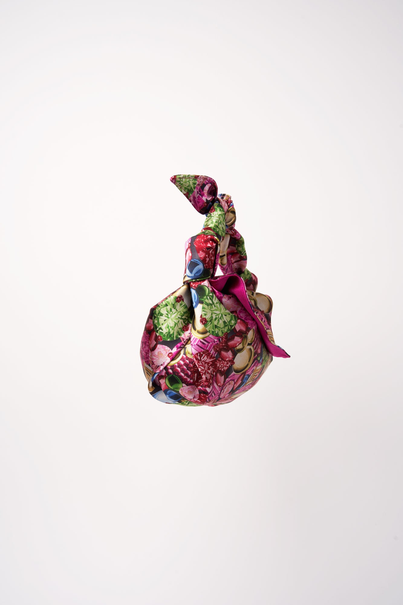 A mini synthetic mikado silk clutch inspired by the Furoshiki Japanese technique of wrapping with fabric. Fully lined with magenta matte satin.