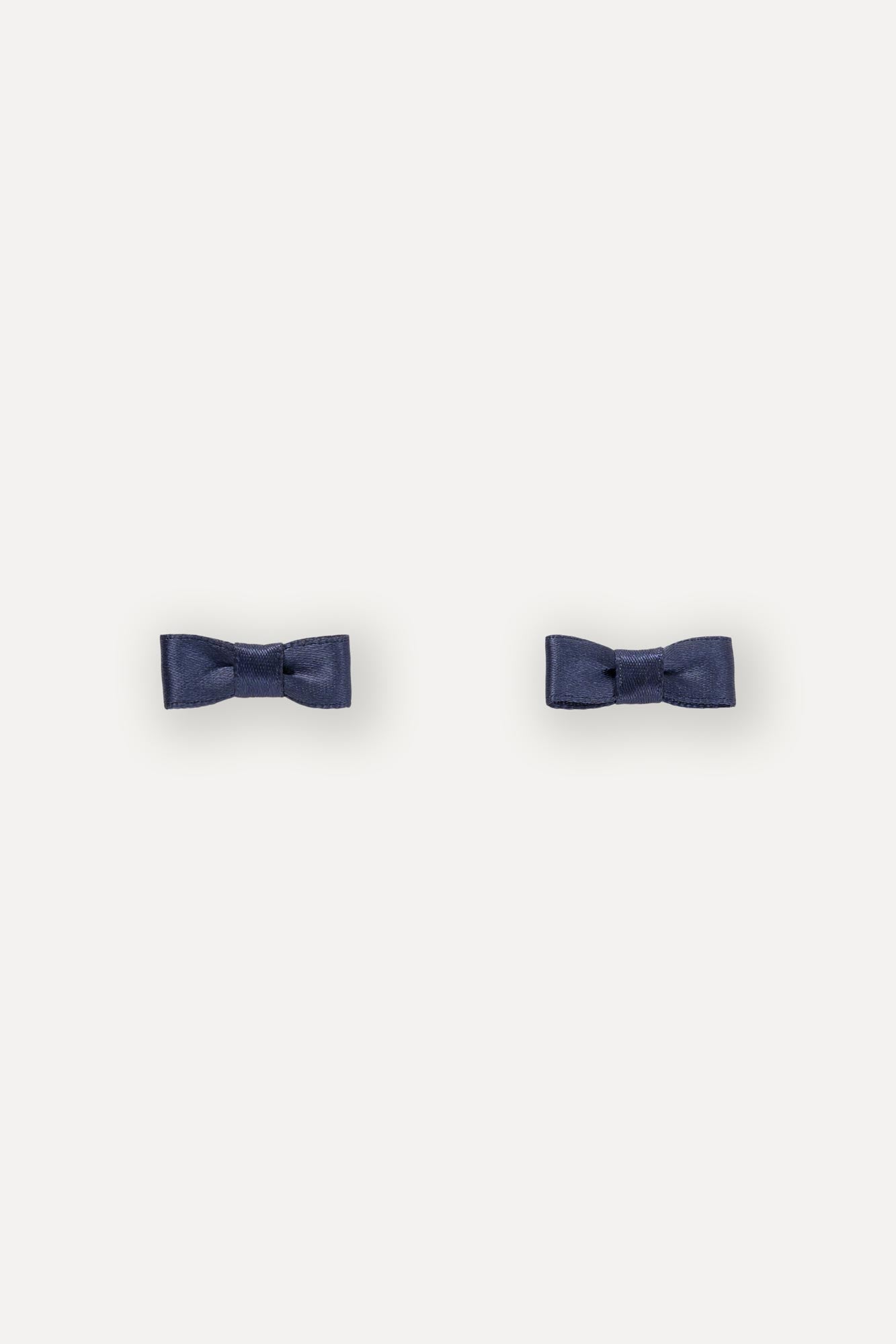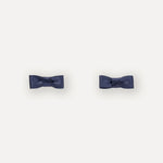 A coquette pair of satin bow earrings in navy. Handcrafted with fabric, these lightweight studs add a touch of elegance to any look.