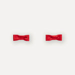A coquette pair of satin bow earrings in a cheerful red. Handcrafted with fabric, these lightweight studs add a touch of elegance to any look.